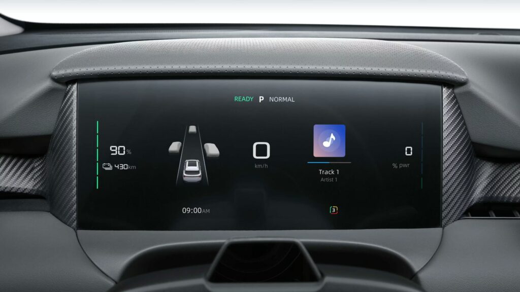 12,8-calowy ekran dotykowy wysokiej jakości służy jako centralna jednostka informacyjno-rozrywkowa. Zaprojektowany jako bardzo intuicyjny, z prostą obsługą funkcji. Od ustawienia nawigacji satelitarnej po wybranie ulubionej melodii − wystarczy szybkie dotknięcie ekranu.