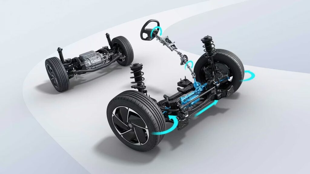 Wielowahaczowe tylne zawieszenie zapewnia doskonałą stabilność na nierównościach, poprawiając jednocześnie komfort jazdy. W połączeniu z minimalnym przechyłem nadwozia sprawia to, że MGS5 EV jest precyzyjny i stabilny nawet na najtrudniejszych drogach.